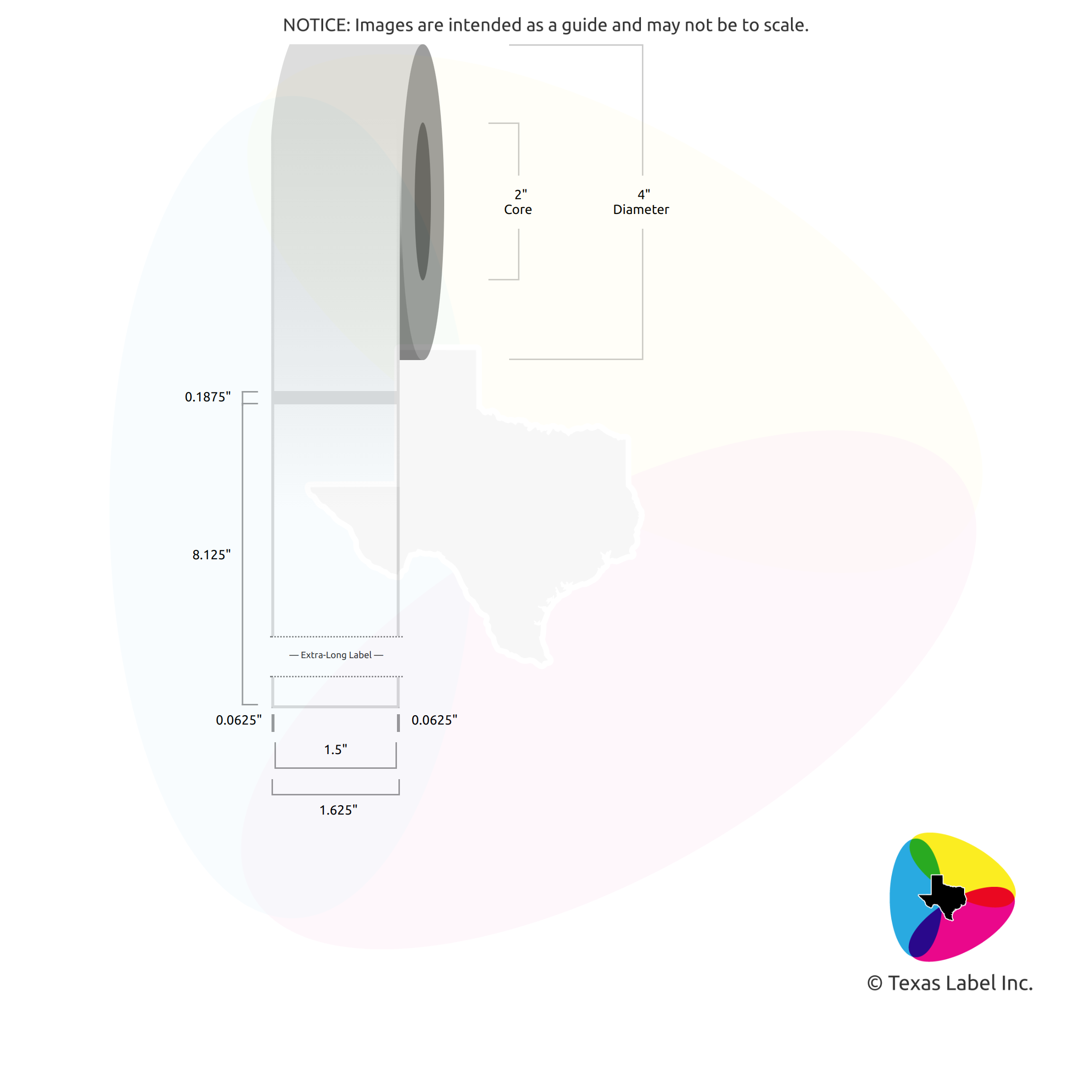 1.5″ x 8.125″ Squared-Corner Rectangle Blank Label Roll for Epson ColorWorks C3500 (2″ Core / 4″ Outside Diameter)